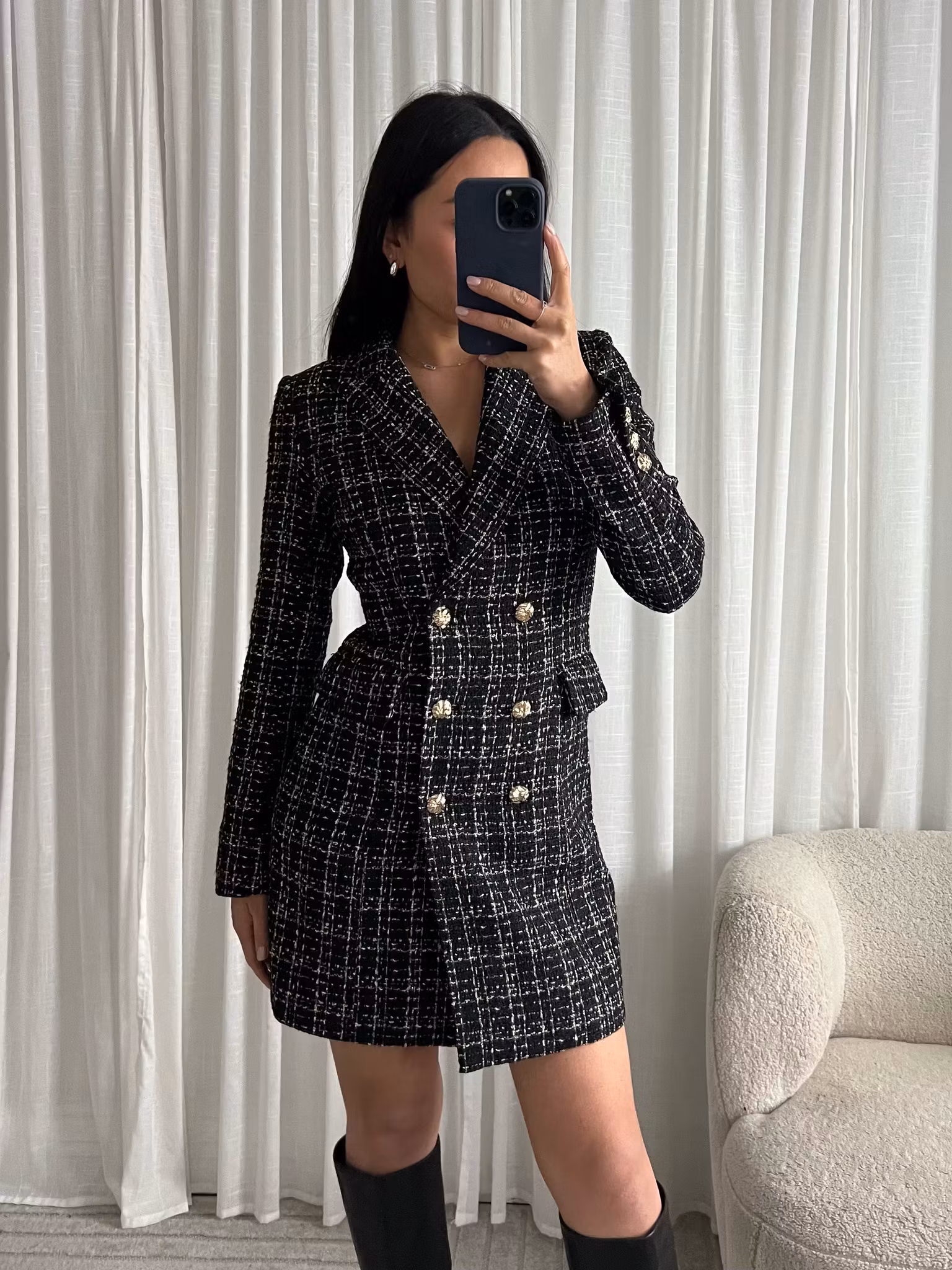 Elegant klänning i tweed med klassisk blazerdesign. Stilrena detaljer som ger en tidlös och sofistikerad look.
