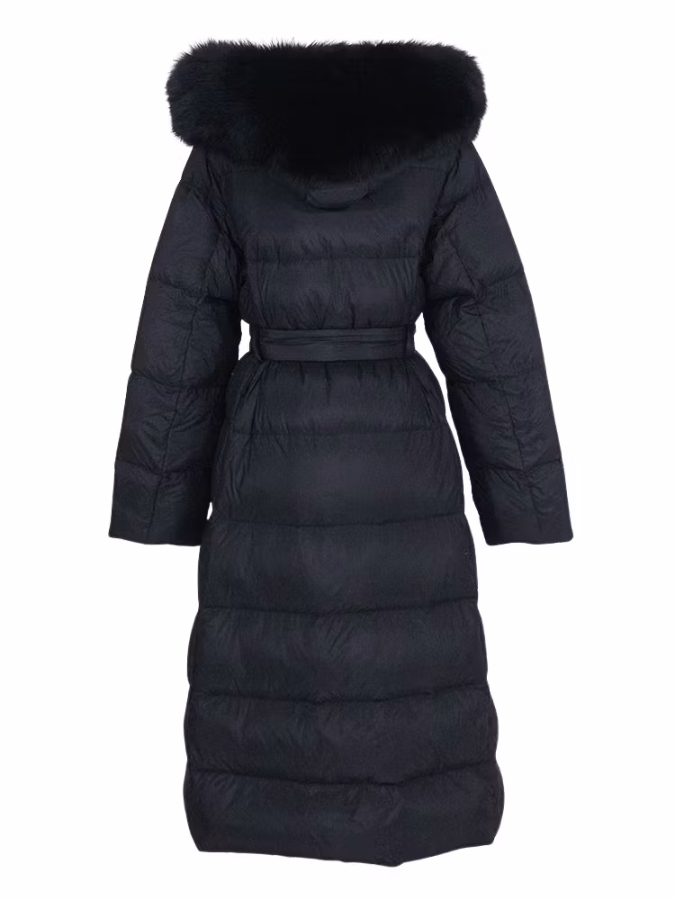 Lång något tunnare dunjacka med justerbart och avtagbart band i midjan med rymlig luva samt avtagbar päls. Funkar därför väldigt bra under vinterhalvåret.