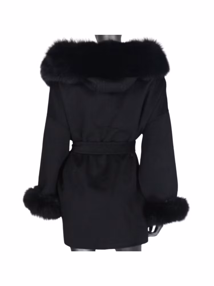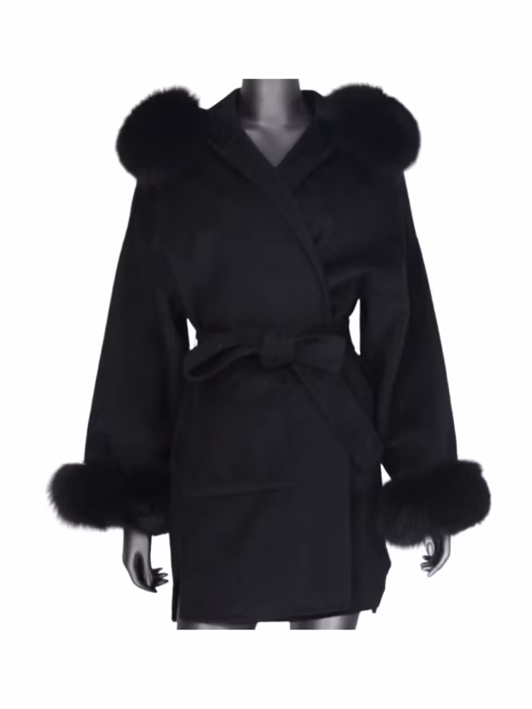 Vår bästsäljare- klassisk tidlös modell i en ull mix, samt en rymlig luva med äkta päls. Justerbart band i midjan samt avtagbar päls. Med tanke på materialet